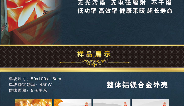 2014年,公司不惜巨資,加大研發(fā)力度,采用進口特級鋁鎂全金板材,進口納米非金屬碳纖維發(fā)熱體,高溫200℃UV金屬亞光烤漆工藝,實現(xiàn)了碳纖維墻暖進步--碳纖維墻暖的無框化。